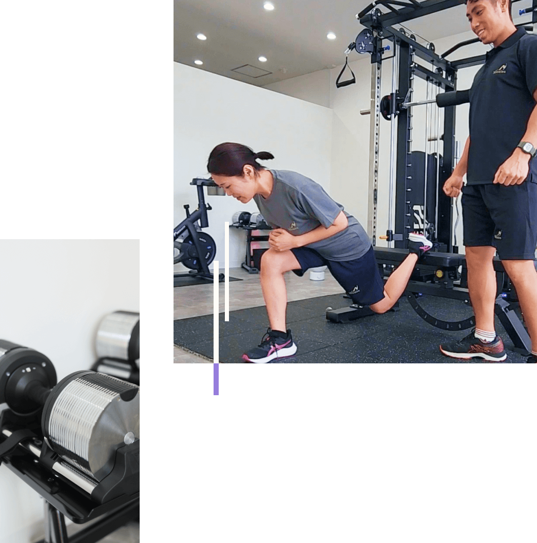 産後のボディケア、ブライダル前のダイエット、筋力アップや姿勢改善まで、経験豊富なトレーナーがあなたの「こうなりたい」にしっかり向き合います。